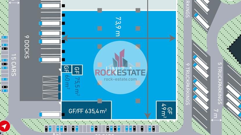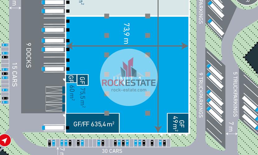 Moduł magazynowy o powierzchni 4405 m2 w cenie ok. 2,89 EUR/m2. Cena jest przybliżoną stawką i zawsze podlega indywidualnym negocjacjom.